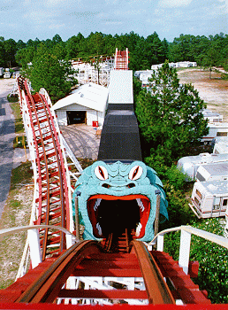 The seaside location, dragon mouth tunnel, and the funky park it calls home, all combine to make the Starliner a great coaster experience. It doesn't hurt that it gives a great ride either!